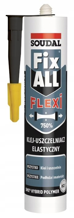 Soudal Fix All Flexi wysoce elastyczny klej-uszczelniacz na bazie polimerów hybrydowych SMX do zastosowań wewnętrznych i zewnętrznych. Klei również wilgotne materiały.